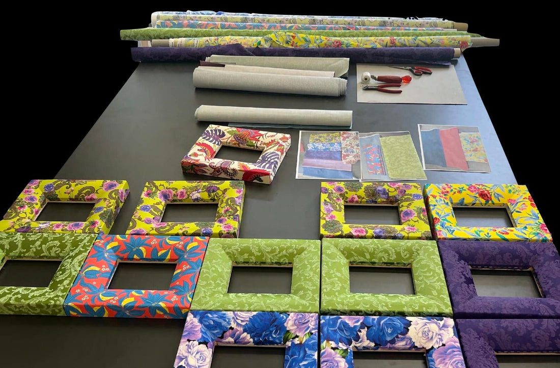 The base is a sturdy spruce wood frame, which we cover with extravagant, slightly stretchy fabrics. The inlays and mount are made of velvet. The glass is real to highlight your image with crystal clarity. The backing is made of sturdy cardboard with a velvet look and feel.