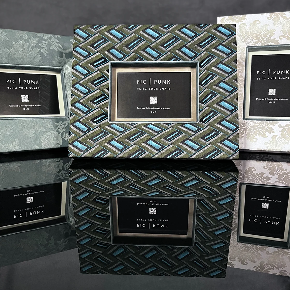 Designbilderrahmen, handgefertigt in Österreich. Bezogen mit exklusiven Stoffen.