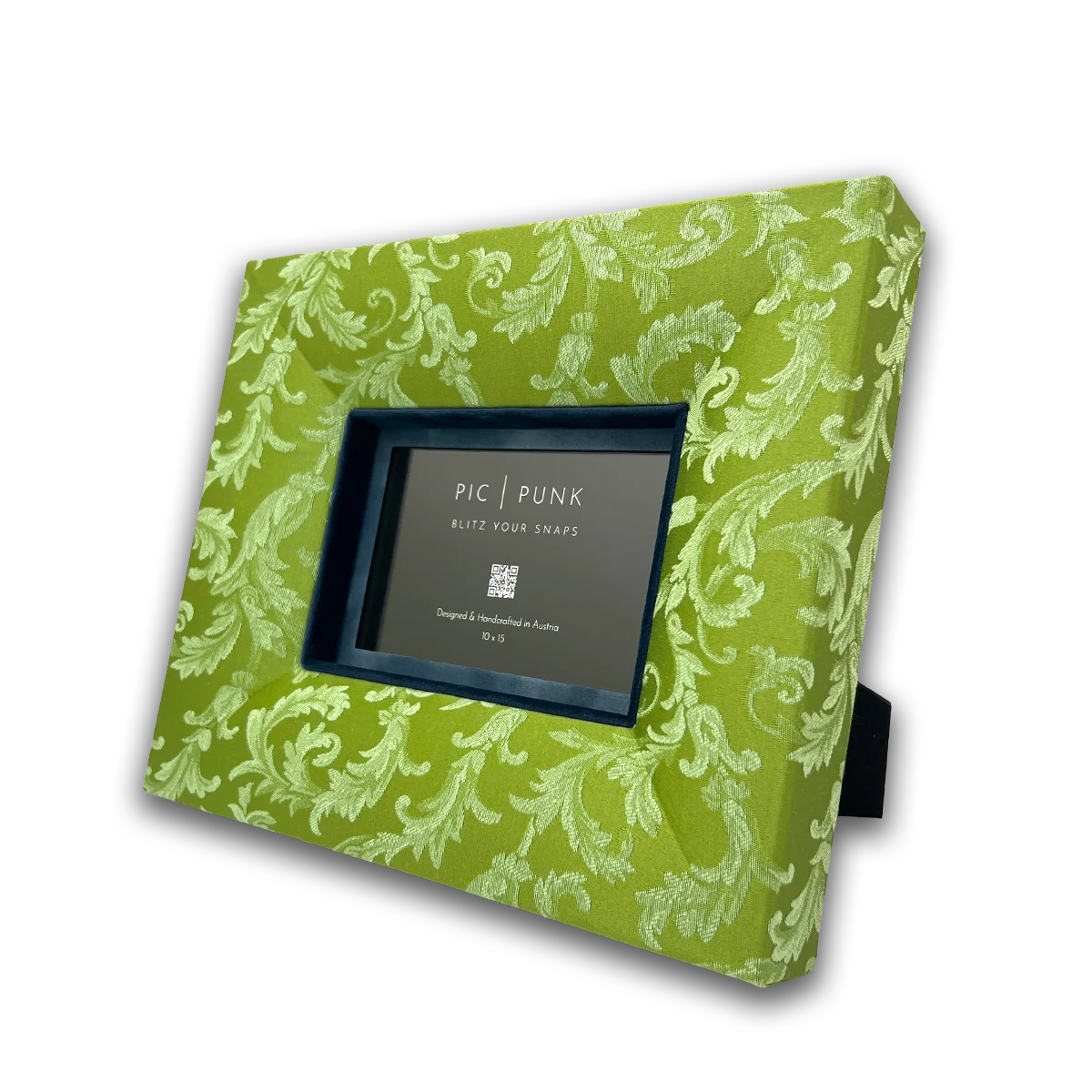 Designbilderrahmen, handgefertigt in Österreich. Bezogen mit exklusiven Stoffen.