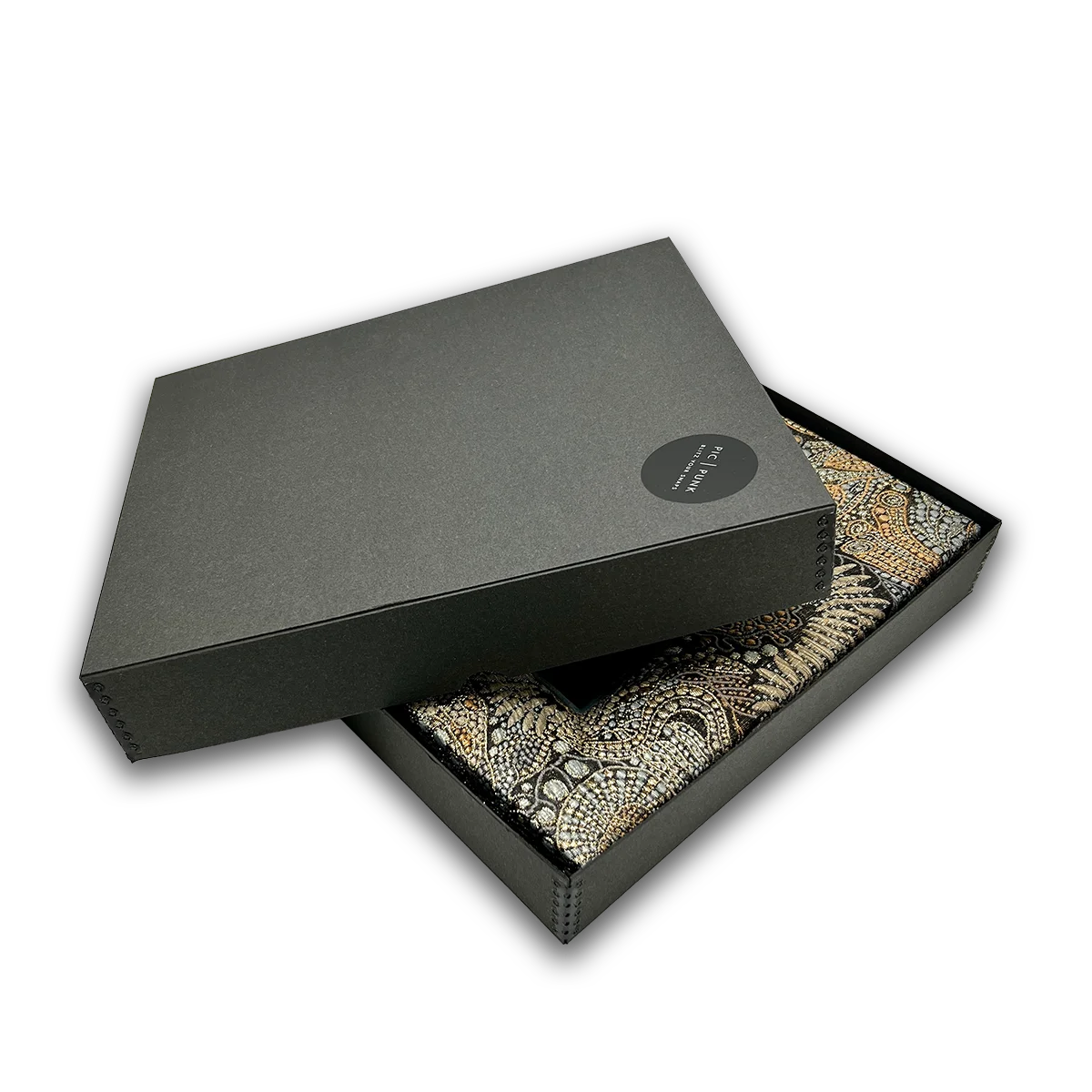 Geliefert in einer eleganten schwarzen Box mit dezentem PUNK-Design, in Seidenpapier gehüllt und ergänzt durch eine stilvolle Karte. Ein dezentes PIC | PUNK® Logo setzt einen hochwertigen Akzent.